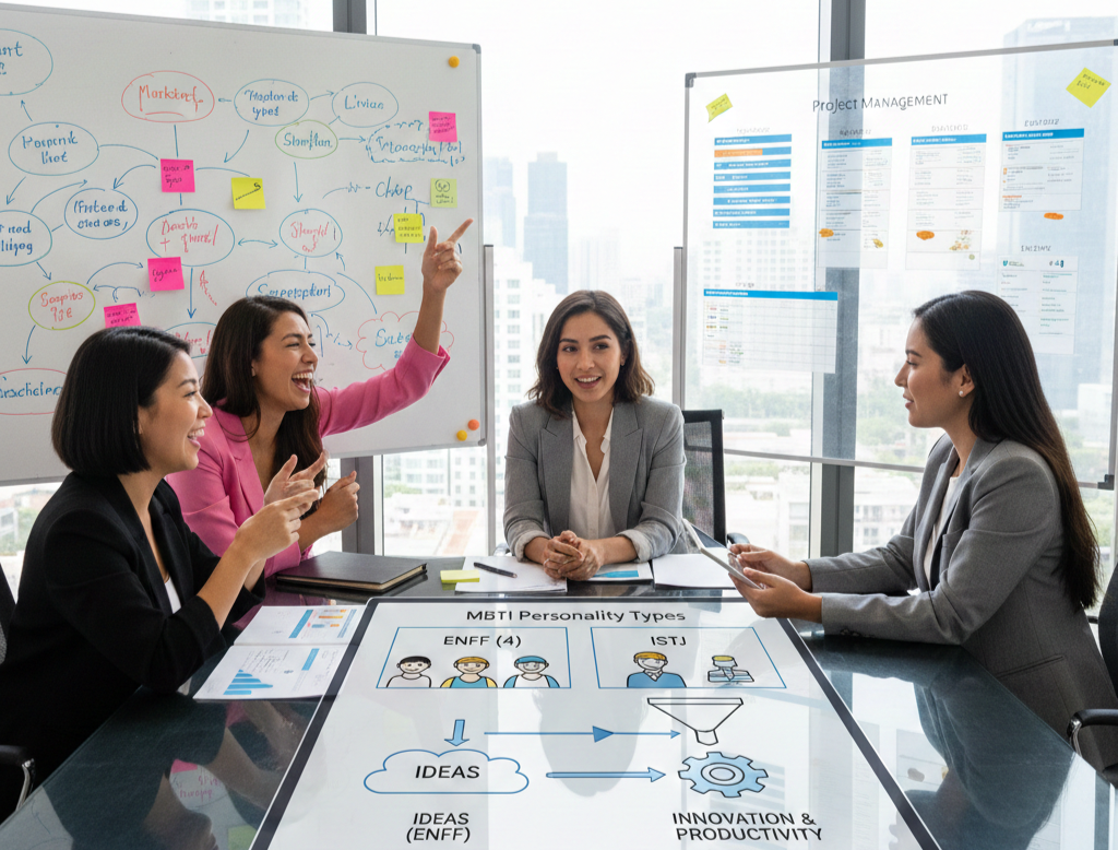 Un equipo equilibrado —con presencia de distintos tipos— puede combinar visión estratégica (N) con ejecución concreta (S), claridad lógica (T) con empatía relacional (F), y planeación (J) con adaptabilidad (P).